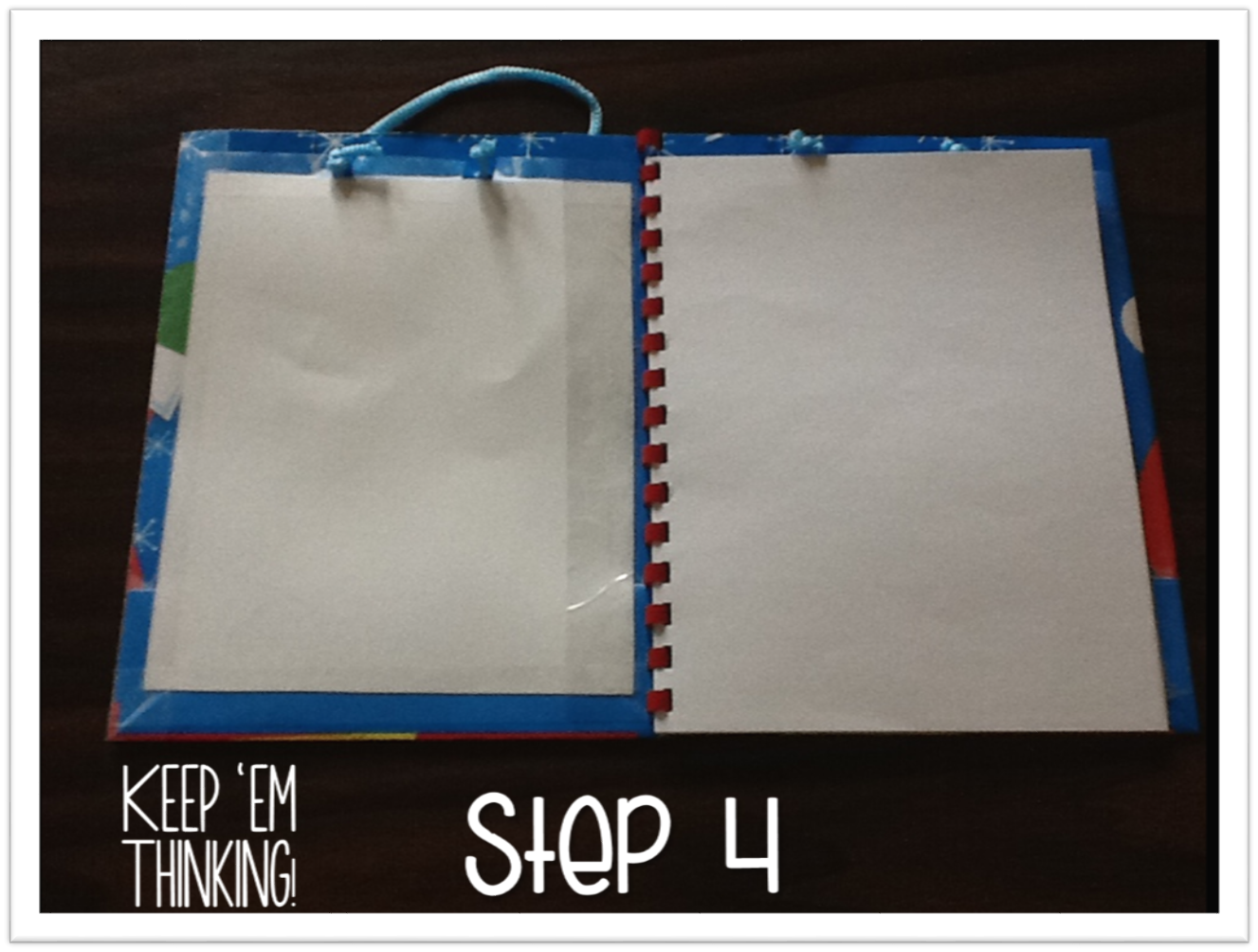 If you are using student created pages, you will need to cut the pages to fit BEFORE you give them to the kiddos to write in. Be sure to have them leave some room on the left side of the page for binding!
