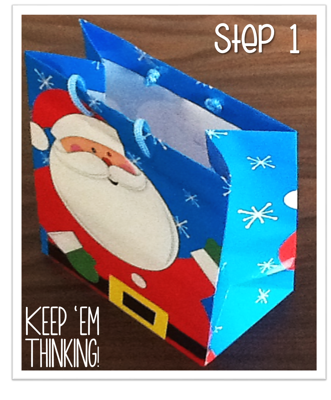 Pick the bag you want to use. I selected this Santa gift bag because it had plenty of room on the front to write a title and it was a nice size.